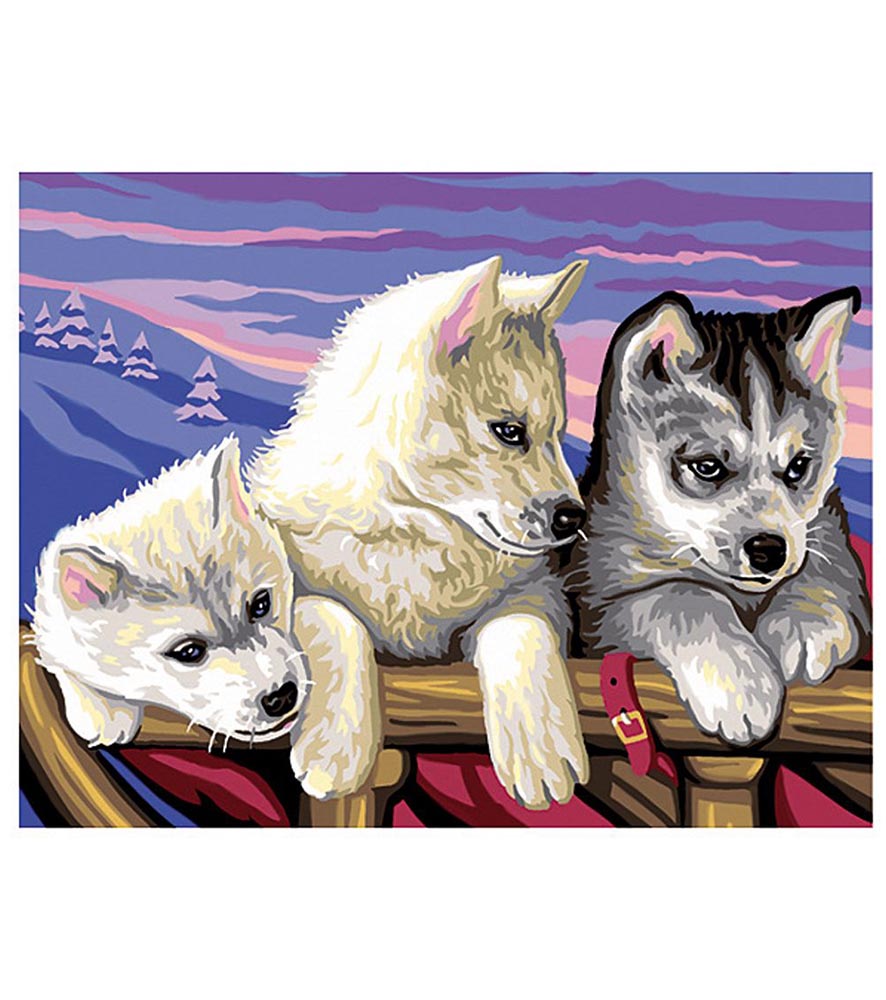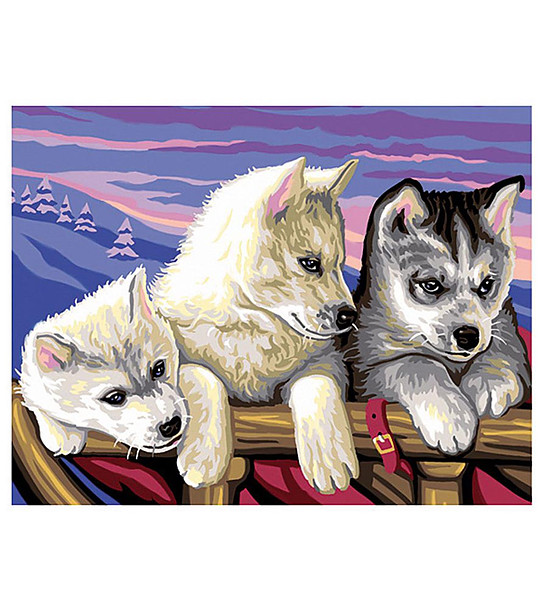 Setul conține: planșă de desen, cu schemă predesenată, vopsele acrilice - 12 culori, pensulă, instrucțiuni