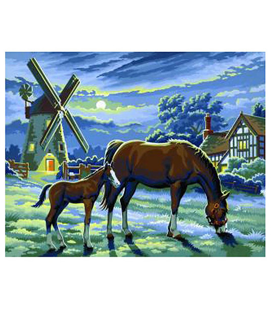 Setul conține: planșă de desen, cu schemă predesenată, vopsele acrilice, pensulă, instrucțiuni