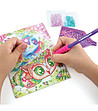 Curcubeu este un set creativ care le permite copiilor să decoreze 3 imagini pre-imprimate cu peste 4.500 de pietricele cu sclipici, creând efecte strălucitoare și un aspect unic. Cum funcționează? Folosind aplicatorul special și blocul de ceară, copiii aplică micro-diamante pe șabloanele lipicioase, urmând numerotarea după culoare.