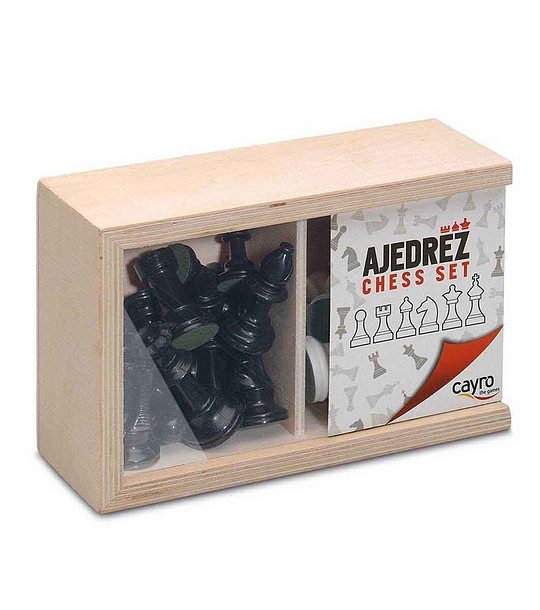Cayro Piese de șah, nr. 3, într-o cutie de lemn Îți place să joci șah? Te joci des? Ai pierdut o siluetă din set? Dacă îți place să joci șah și ai pierdut o piesă, acesta este un set care îți va permite să joci din nou și să te bucuri de joc. De ce să cumpărați Accesorii, Piese de șah, piesele de șah #3 pot fi utile persoanelor care cumva au pierdut o piesă din setul lor. Odată ce setul lor de pioni, episcopi, cavaleri, rooks, rege și regina nu este complet, este necesar să se treacă la achiziționarea accesoriilor de șah. Le poți cumpăra și dacă te-ai săturat de vechile figuri. Pentru a vă face jocul și mai plăcut, am selectat piese extrem de fin și precis lucrate care creează încântare și încântă simțurile în timp ce vă răsfățați cu gândirea logică. Piesele de șah ne permit fiecăruia dintre noi să petrecem timp prețios dedicat unui sport preferat, care este șahul Știai că jocul de șah este cunoscut în versiunea sa modernă încă din secolul al XIV-lea? Vă puteți imagina câți oameni au jucat de atunci și cât de fascinați au fost? Adevărul este că acesta este singurul sport care reușește să stimuleze foarte mult activitatea mentală la om. Dimensiune cutie: 17 x 11 x 6 cm.
