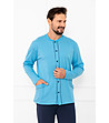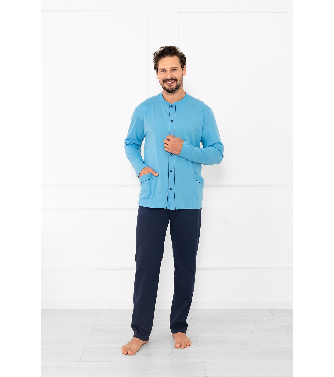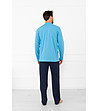 Pijama bărbătească din bumbac ALCHEST cu mâneci lungi și pantaloni lungi în albastru deschis și albastru închis