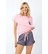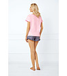 Italian Fashion Pijama roz cu mânecă scurtă din bumbac Lotte cu inimioare Partea de sus: bluză cu mânecă scurtă, decolteu cu paspoal și buzunar frontal cu imprimeu