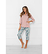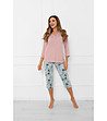 Pijama roz pudră din bumbac cu imprimeu și mâneci 3/4 Sekwoja