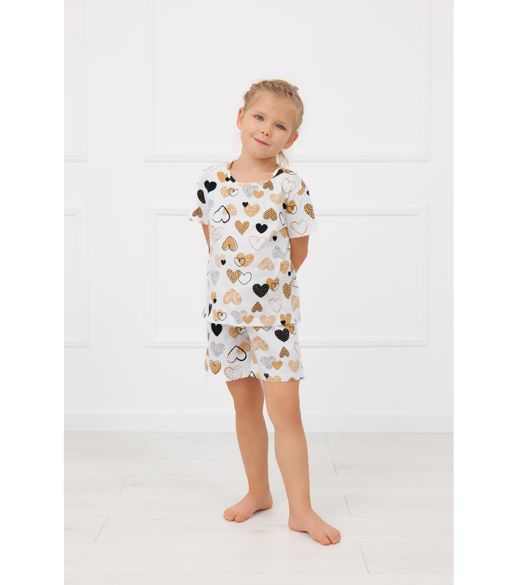 Italian Fashion Pijama scurtă albă din bumbac pentru copii cu imprimeu cu inimioare ARIELA Pijama pentru copii cu top cu mâneci scurte și decolteu rotund.