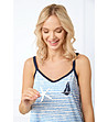 Pijamale Flota din bumbac, în culorile albastru și bleumarin, cu bretele subțiri