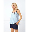 Italian Fashion Pijamale Flota din bumbac, în culorile albastru și bleumarin, cu bretele subțiri Top cu decolteu adânc în V și garnitură contrastantă