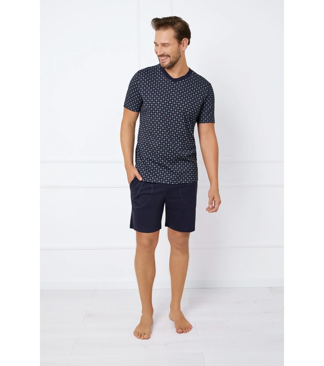 Italian Fashion Pijamale bărbătești Gerard albastru închis din bumbac cu imprimeu Siluetă clasică dreaptă
