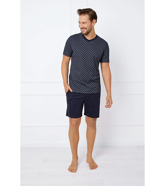 Pijamale bărbătești Gerard albastru închis din bumbac cu imprimeu