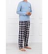 Pijamale bărbătești albastre din bumbac cu mâneci lungi și pantaloni lungi EDWIN