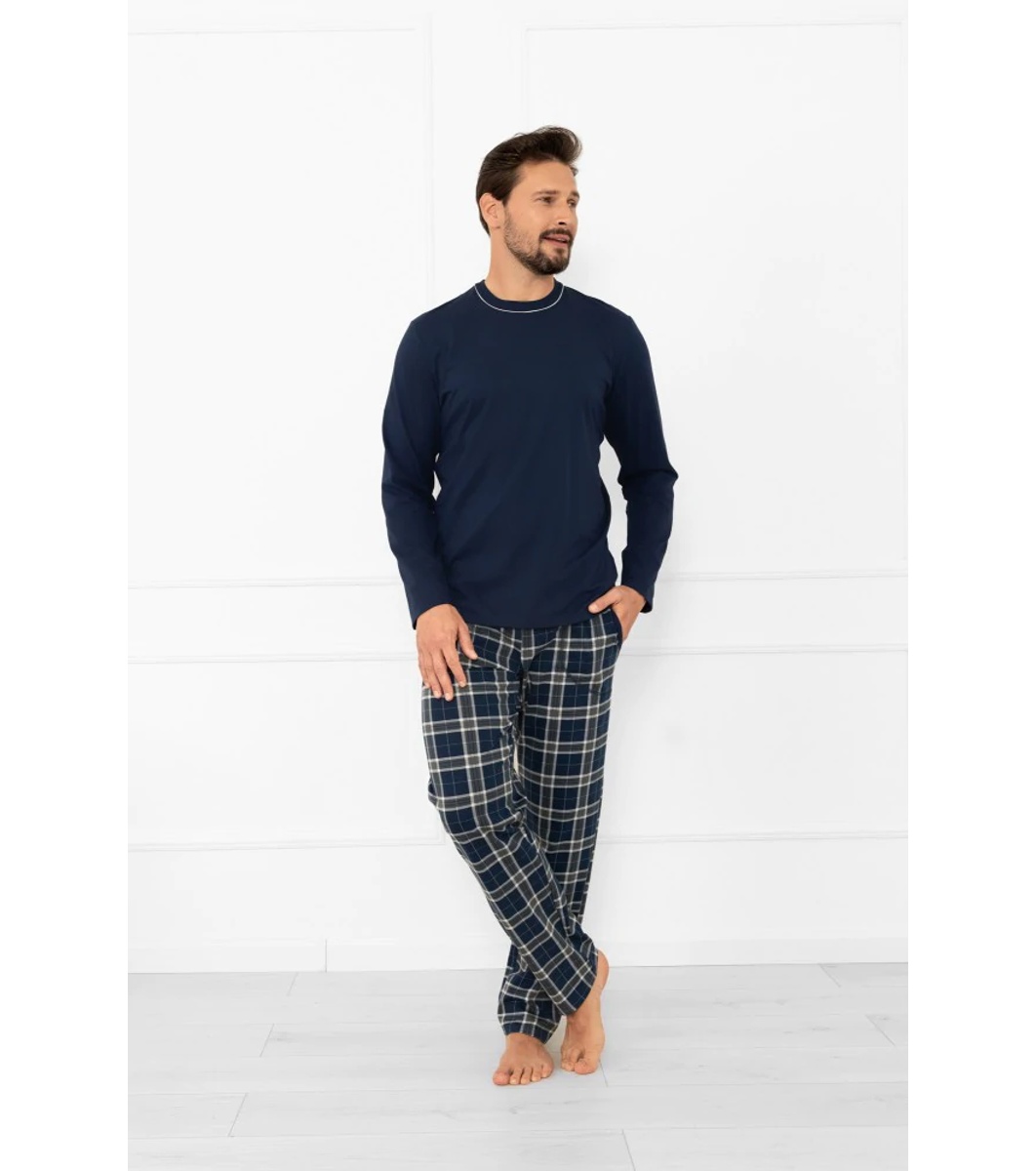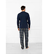 Italian Fashion Pijamale bărbătești albastru închis din bumbac Andreas în carouri Top cu mâneci lungi și decolteu rotund