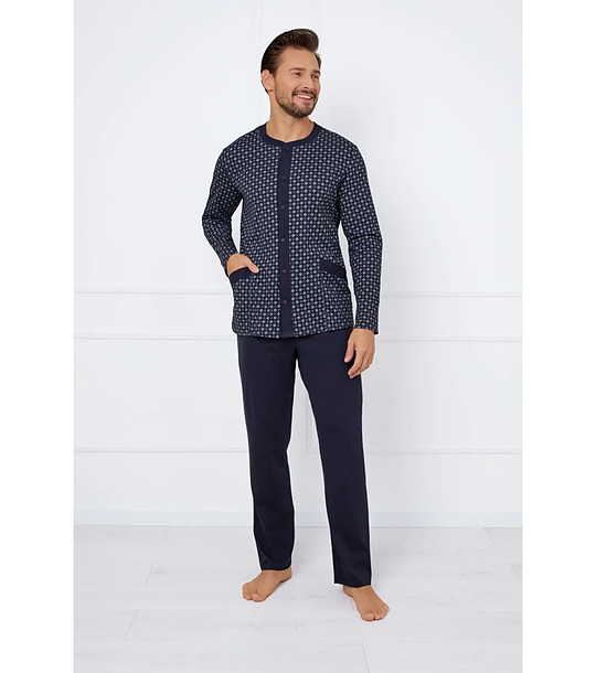 Italian Fashion Pijamale bărbătești albastru închis din bumbac cu imprimeu Rajmund Pijamale bărbătești cu mâneci lungi și pantaloni lungi