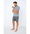 Pijamale bărbătești de vară din bumbac, în culoarea gri melanj, cu mâneci scurte Krystian