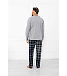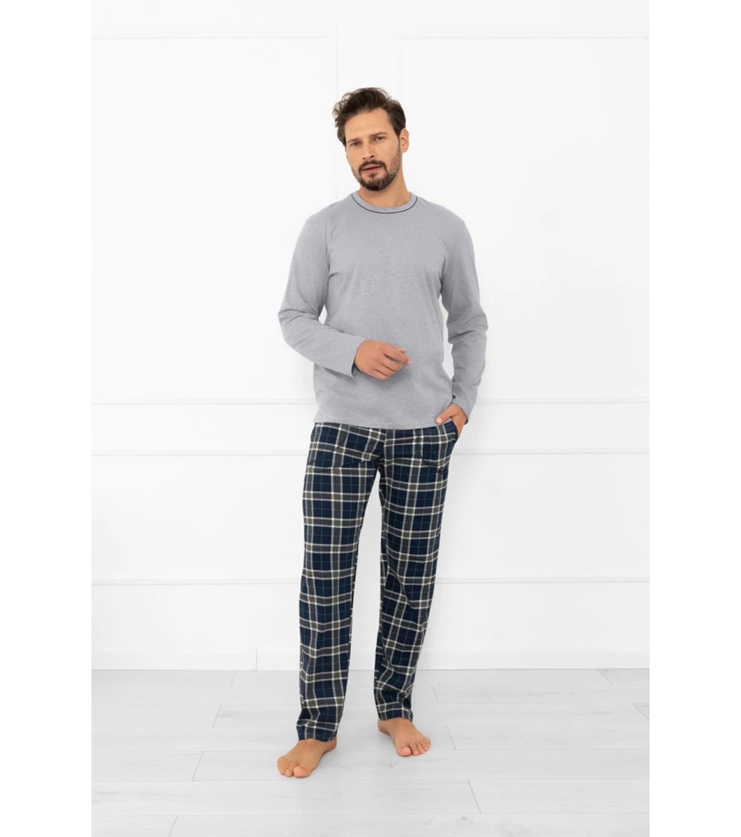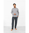 Pijamale bărbătești din bumbac, în gri melanj, cu mâneci lungi și partea de jos în carouri Andreas