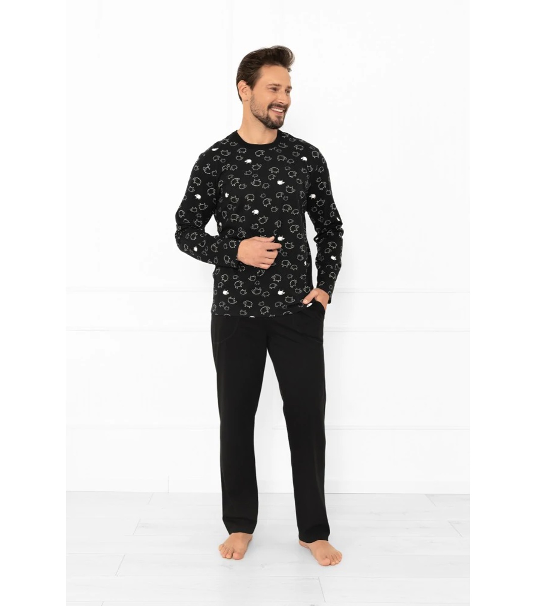 Pijamale bărbătești negre din bumbac cu mâneci lungi Wito