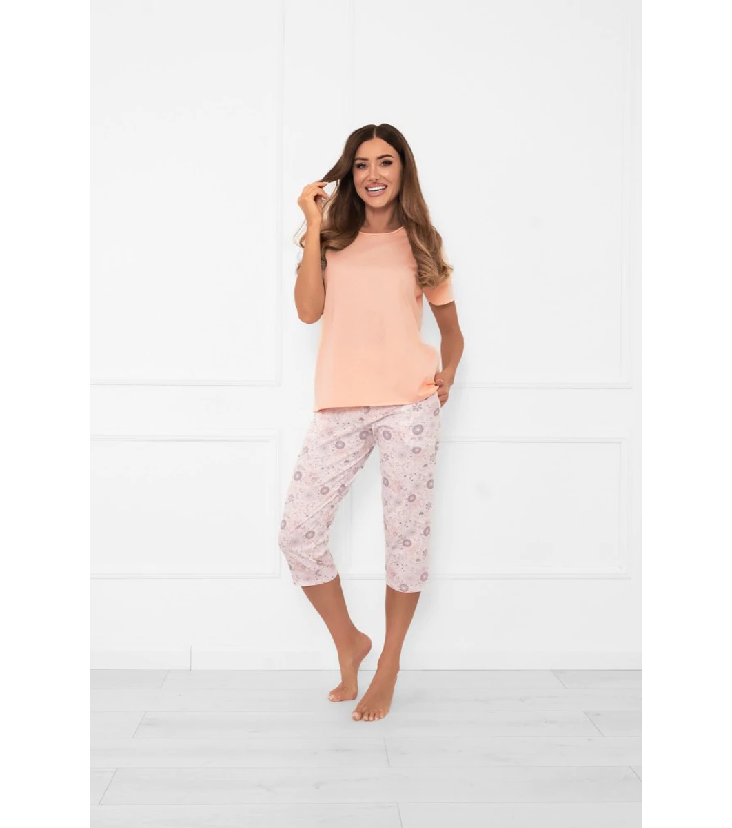 Italian Fashion Pijamale de damă Satui din bumbac, culoare somon, cu imprimeu floral Top cu mânecă scurtă