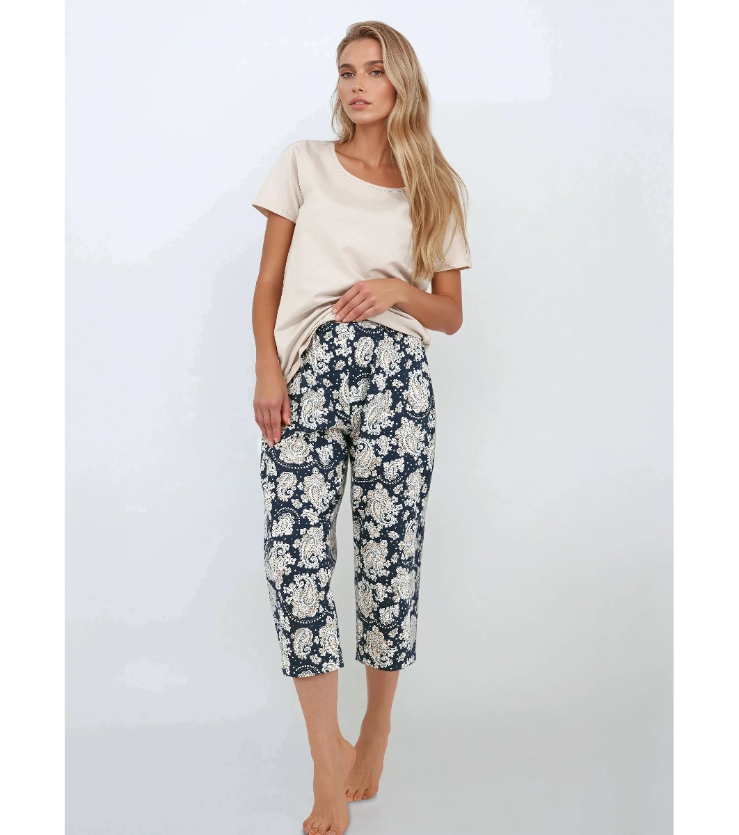 Pijamale de damă din bumbac, în culorile bej și albastru Navy Charm