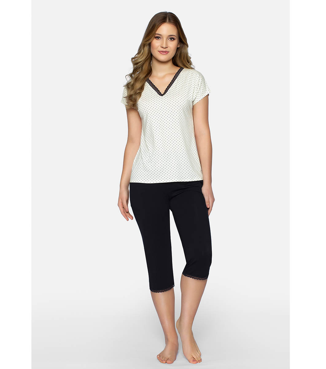Pijamale de damă în negru și ecru cu fundul 7/8 Cleo