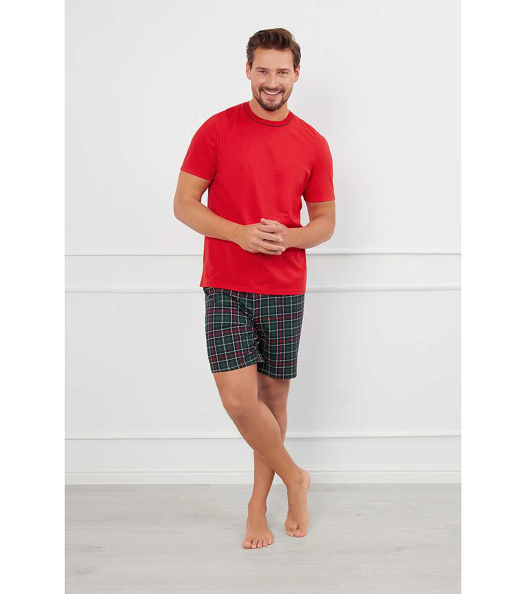 Pijamale de vară bărbați din bumbac în roșu și verde Fogo