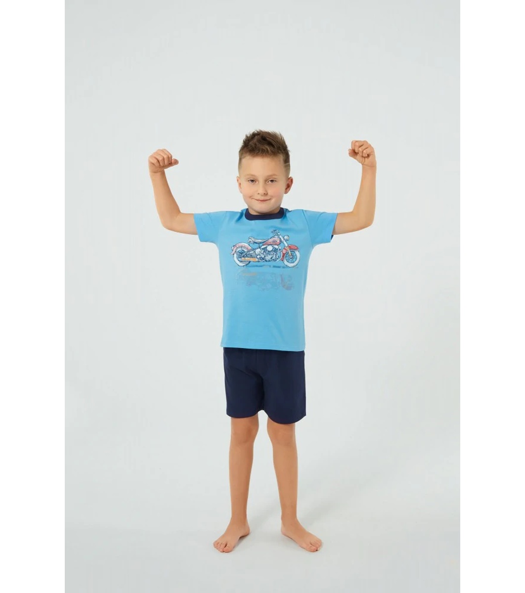 Pijamale de vară din bumbac pentru băieți, în albastru, Junak