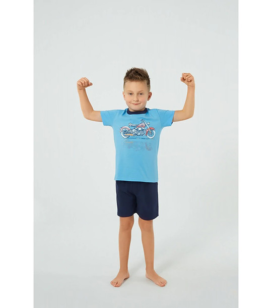 Italian Fashion Pijamale de vară din bumbac pentru băieți, în albastru, Junak Top albastru deschis cu imprimeu