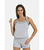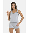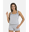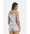 Teyli Pijamale de vară gri pentru femei cu volane Pama Pijamalele din viscoză pentru femei sunt un set de pijamale confortabil și elegant.