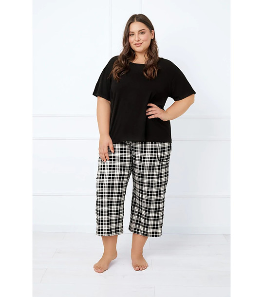 Italian Fashion Pijamale negre de damă 7/8 Klara cu carouri Pijamale de damă cu o croială clasică și confortabilă