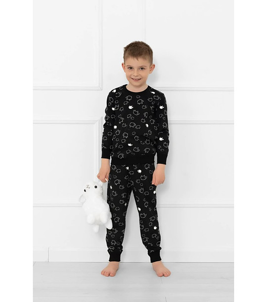 Pijamale negre pentru copii din bumbac cu imprimeu cu oi Wito