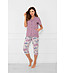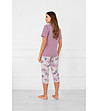 Pijamaua mov din bumbac pentru femei Zafra cu imprimeu floral și mâneci scurte
