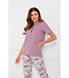 Italian Fashion Pijamaua mov din bumbac pentru femei Zafra cu imprimeu floral și mâneci scurte Top cu mânecă scurtă
