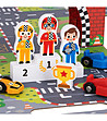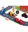 Inspirat de Formula 1, setul combină emoția pistei de curse cu confortul unei valize care se deschide într-o lume completă a jocurilor. Setul include: 3 cărucioare de curse; 3 figurine de curse; 14 elemente de drum; linie de sosire; 4 anvelope de siguranță; 6 garduri; podium de premiere; trofeu de aur; valiză de carton care se transformă într-o pistă.
