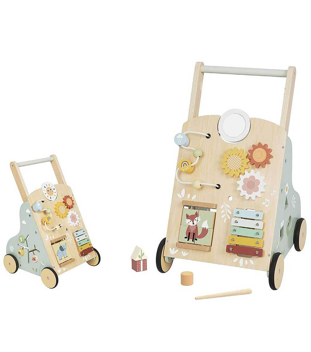 Un plimbător frumos, din lemn și interactiv, care combină multe funcții. Este conceput astfel încât copilul să se poată mișca stabil și confortabil ținându-se de mâner.