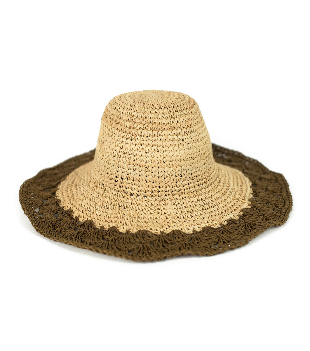 Pălărie de femei bej cu franjuri cu margine maro-închis