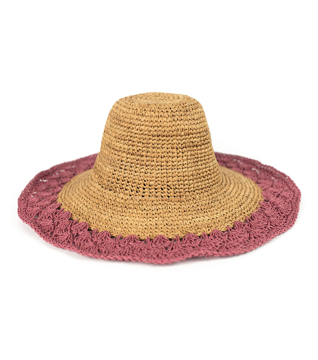 Pălărie de femei bej cu franjuri cu margine roz-închis