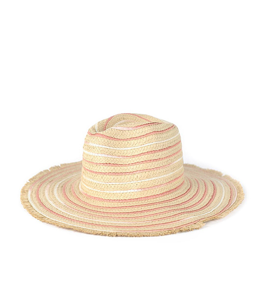 Pălărie de femei în nuanță crem cu dungi în roz și alb Carla