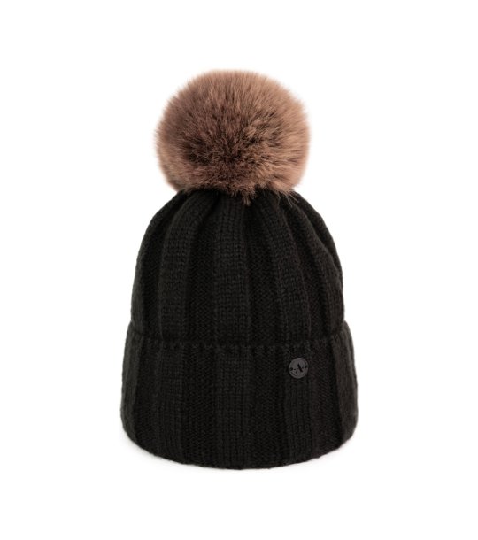 ART of POLO Pălărie neagră cu pompom MURAȚ Pălărie de iarnă cu pompom