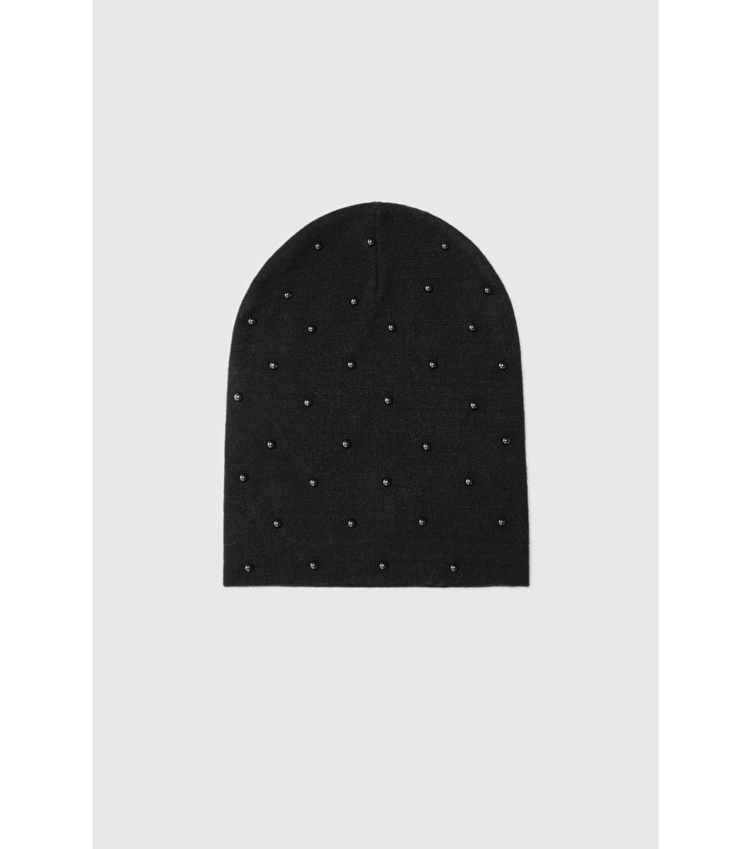 Pălărie de damă cu mărgele, confecționată din material moale și elastic.