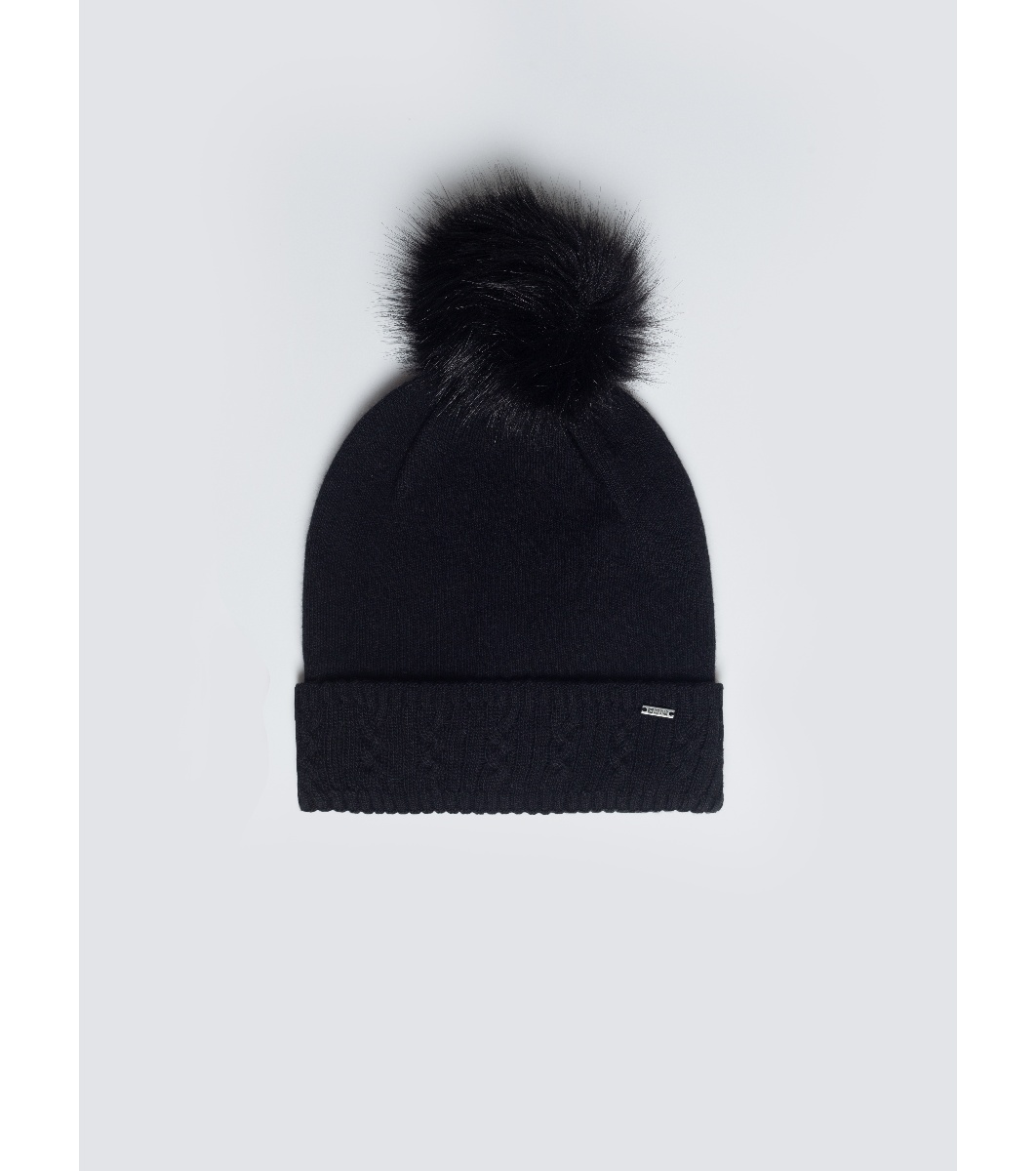 Pălărie neagră pentru femei cu pompon STANILO