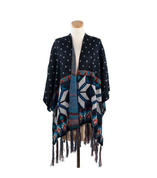 Poncho în stil scandinav cu franjuri