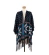 ART of POLO Poncho albastru cu franjuri NORWESKIE GWIAZDKI Poncho în stil scandinav cu franjuri