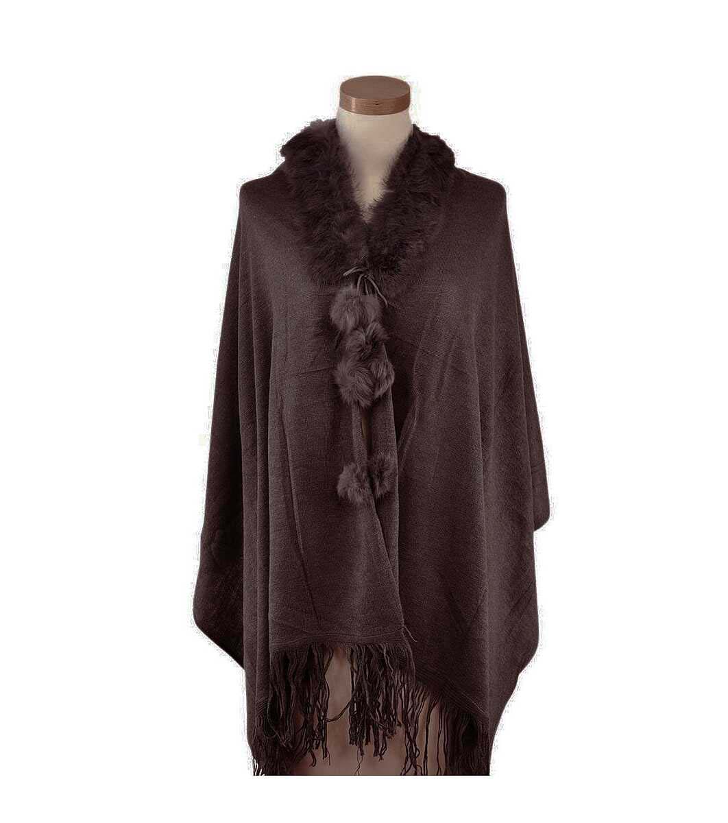 Poncho cu pompon maro închis