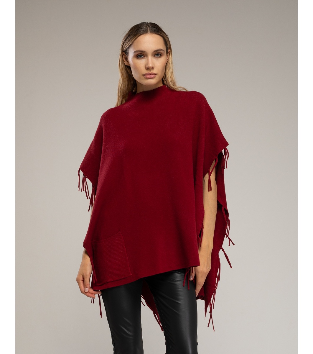 Tantra Poncho elegant de damă, culoare vișinie Tricotat la mașină