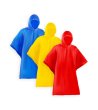Poncho impermeabil pliabil, cu glugă și găuri pentru brațe. Margini termosudate și închidere laterală cu nasturi.