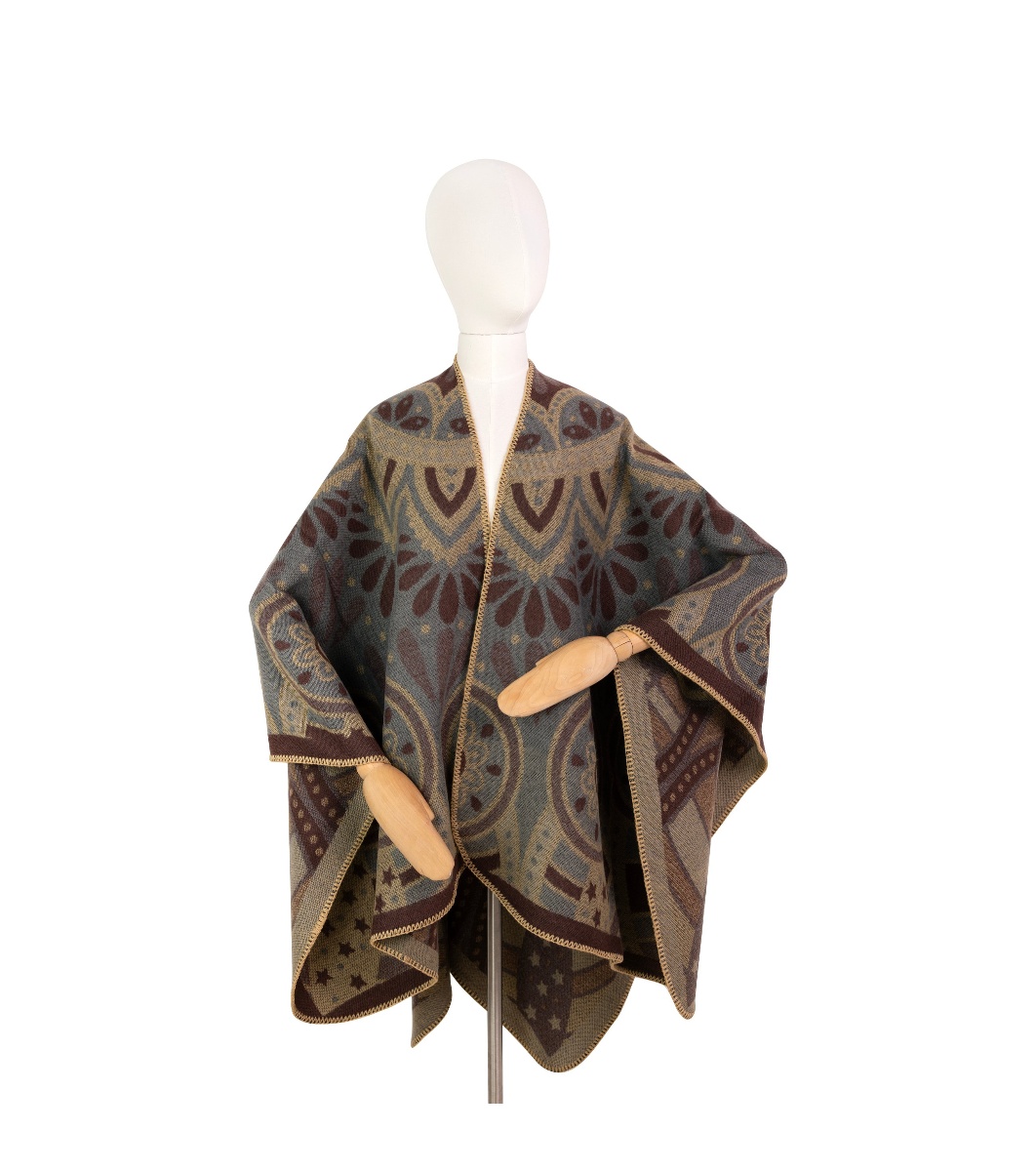 Poncho în culorile maro închis, bej și gri, cu motiv paisley