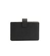 Portcard pentru femei, cu design curat și logo metalic pe față. Are o clapă cu curea de închidere. Compact și convenabil pentru utilizarea zilnică.
