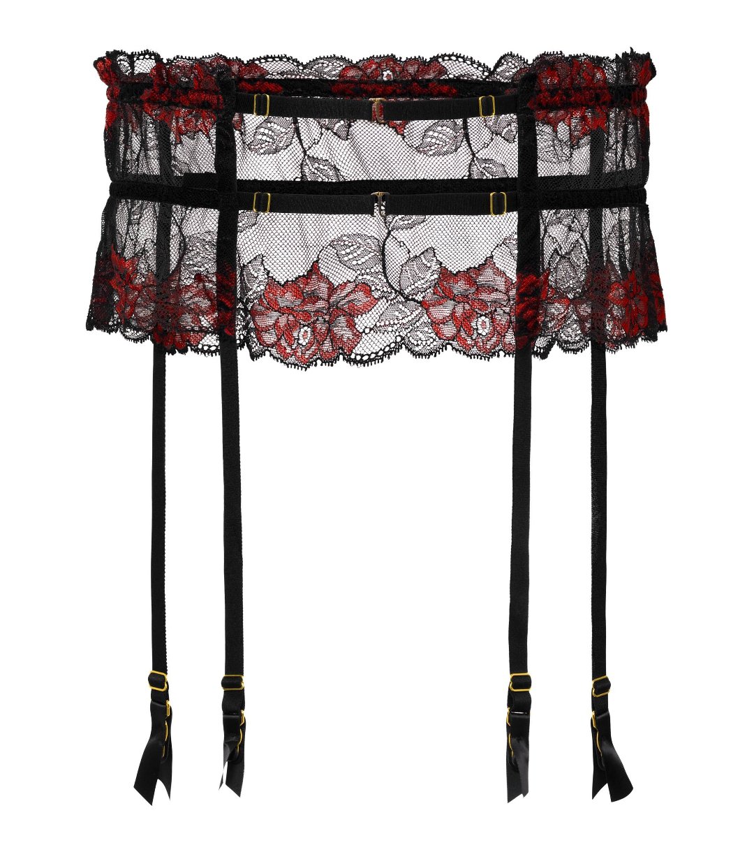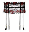 Fiore Portjartier din dantelă neagră cu motive florale roșii ROSE Portjartier din dantelă cu motiv floral