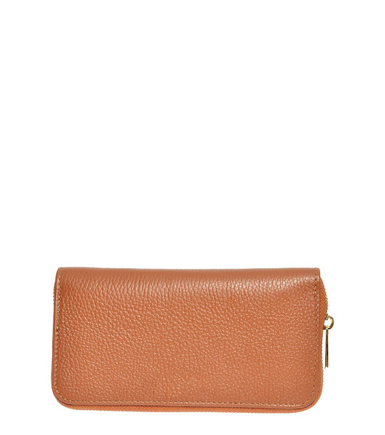 Portofel de damă din piele naturală de culoarea coniacului Biana