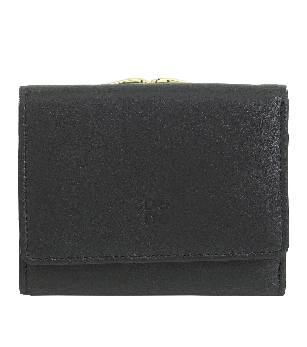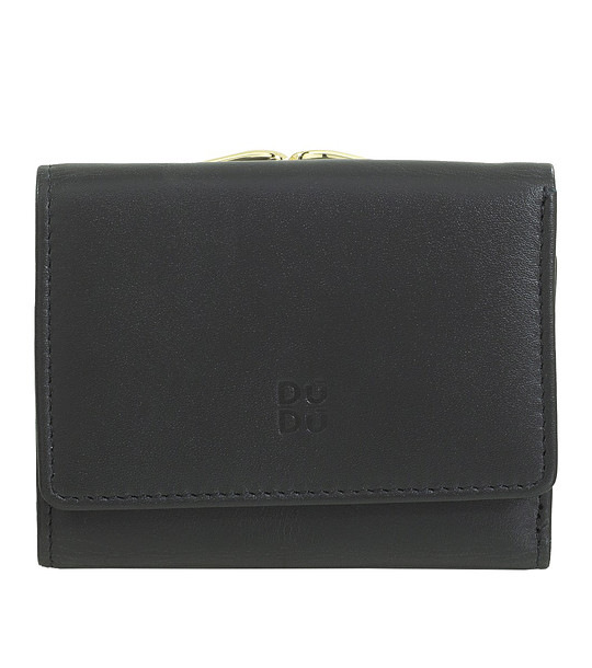 DuDu Portofel de damă din piele neagră cu interior contrastant Corsica