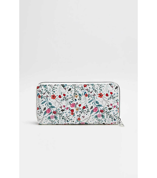 Moodo Portofel de dama alb cu imprimeu floral Închidere cu fermoar