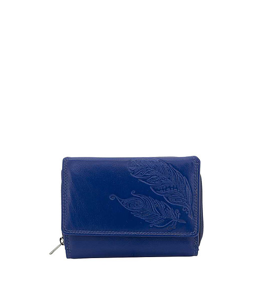 Portofel de dama albastru din piele cu motive spectaculoase cu RFID