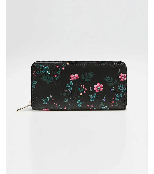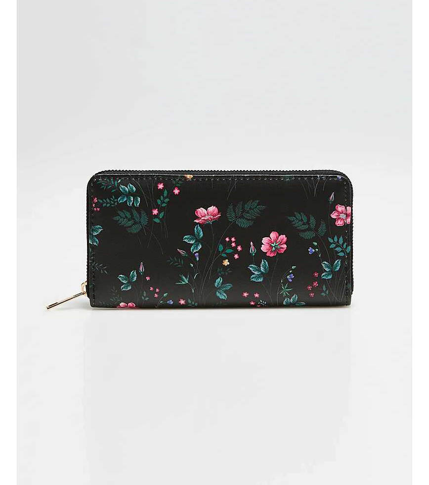 Moodo Portofel de dama negru cu imprimeu floral Închidere cu fermoar